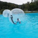AQUAZORBING - zabawa na tafli basenu, która polega na „chodzeniu” po wodzie w przeźroczystej kuli o średnicy 2 m. W kuli można chodzić, biegać, skakać, rzucać się, a nawet robić „fikołki”, odbędą się również wyścigi kul (zajęcia pod opieką instruktora).